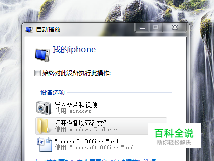 2、可以选择“打开设备以查看文件”或者在我的电脑中找到你的iphone