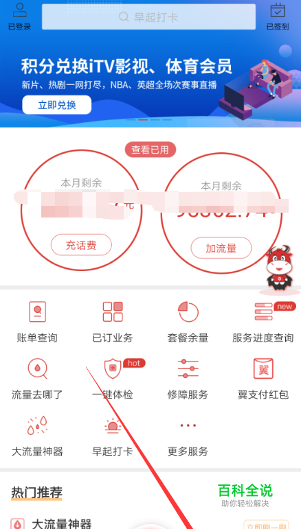 打开电信10000应用软件,并成功登录进去,然后点击界面下面的【热门活动】,如下图所示。