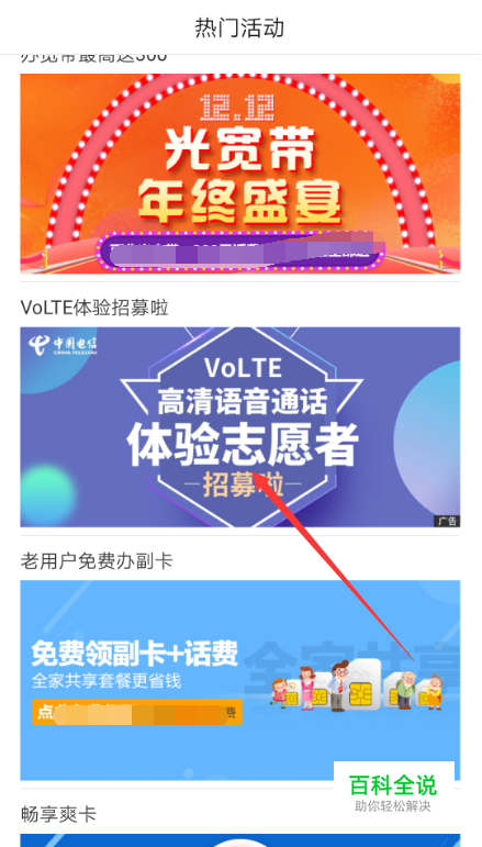 在热门活动界面里,向下滑动找到【VoLTE体验】,然后点击进入,如下图所示。