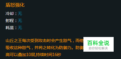 E技能:盾怒强化,被动,看说明是说可以转化为防御力,叠加10层,但是用的时候很会被会忽略的技能。