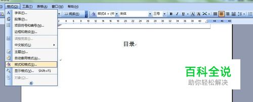 创建目录,首先从word菜单栏选择“格式”--->“格式和样式”