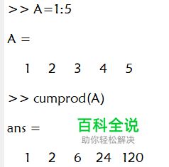 首先,如果我们有一个n个分量的行向量或者列向量,直接使用cumprod函数可以求出从第1个到第n个的累乘结果,存入长度为n的新向量中。