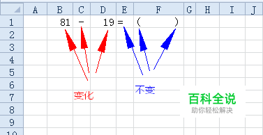 确定了出题样式,就可以出题了,横式和竖式的数据是相同的,只是格式不同,因此可以用来设计横式题,竖式题直接用公式复制过去就可以了。不管是加法还是减法,“=”前面有三个要素,两个数字,一个运算符号,“=”后面填得数,可以直接空着,也可以加对“( )”,如:81-19=( ),前面的是变化的,后面的是不变的。