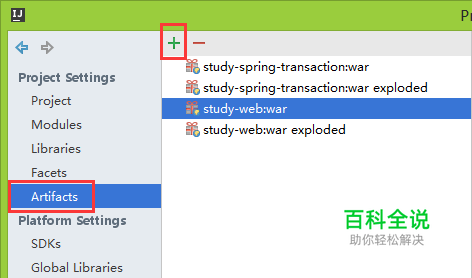 使用idea打开自己的项目工程,然后点击右上角的Project Structure按钮。Project Structure对话框中选择Artifacts,如果之前没有创建过jar,需要点击加号新建一个