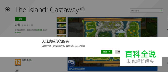 很多机油在新装了windows8.1系统后,用微软自带应用商店安装软件时会出现错误代码0X80070426,不能安装软件。如下图:
