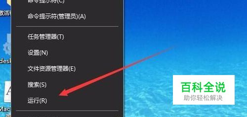 在Windows10桌面,右键点击桌面左下角的开始按钮,在弹出菜单中选择“运行”菜单项