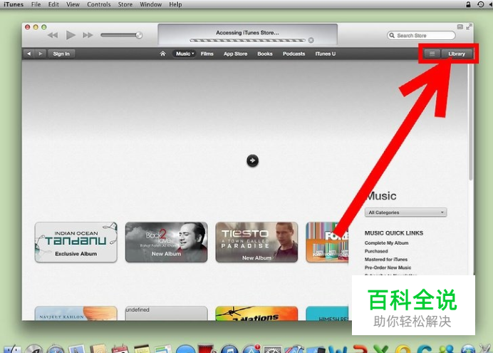 如果iTunes现在不是音乐库,你需要点击音乐库,然后在右上角的搜索栏中,输入歌曲名。