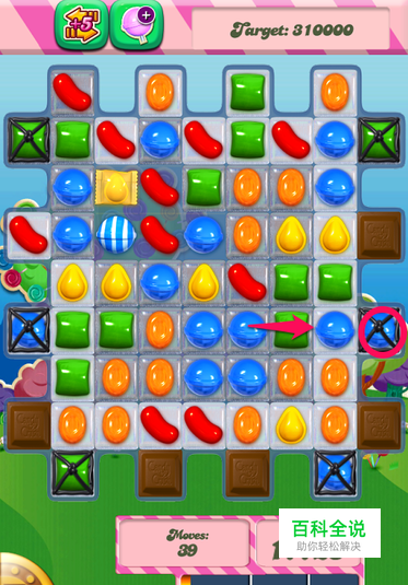 集中精力消除“囚禁”的糖果。如果移动时没有机会消除巧克力,那么第二选择是消除“囚禁”的糖果。与上一步相同,首先选择消除游戏板下半部分的糖果,因为这样有可能会引发连锁消除反应。