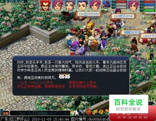 梦幻西游,为广州亚运会加油!亚运的脚步越来越近,当年口衔稻穗,解救广州连年灾荒的五只仙羊,不禁欣喜万分。降临三界出现在长安城与梦幻玩家共襄亚运盛举。乐羊羊号召大家一起来做光荣的亚运志愿者。机缘之士更是会获得丰厚的大奖,让我们与乐羊羊会一起去看亚运吧!