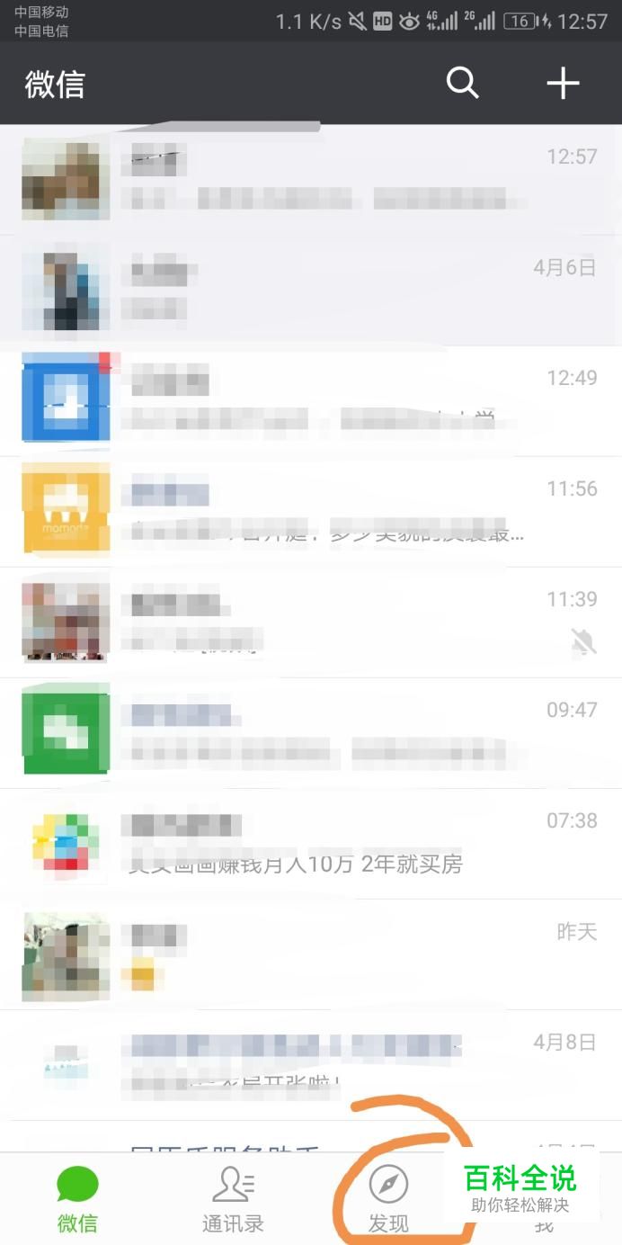 然后我们进入主页,找到最下面一排的第三个“发现”,并且点击进去