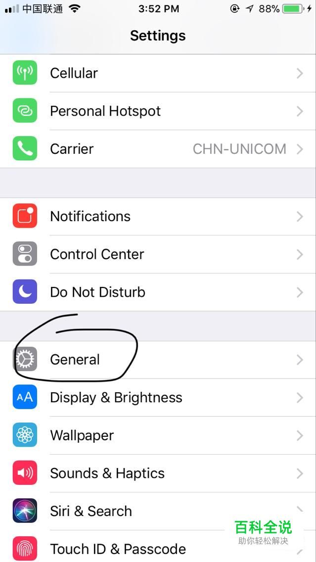 然后在“settings”里找到“general”,这就是中文通用的意思,如图所示。