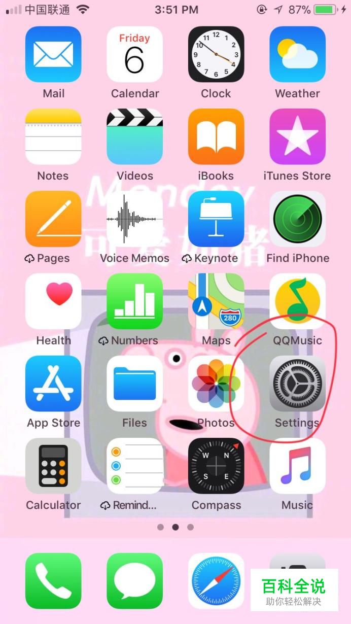 首先我们正确解锁我们的手机,找到“settings”,也就是设置,如图所示。