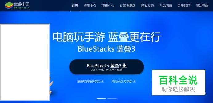 使用搜狗搜索“蓝叠模拟器”,进入蓝叠模拟器官网下载并安装蓝叠模拟器。