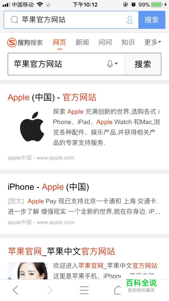 使用搜狗浏览器搜索苹果官方网站