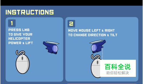 游戏中点击鼠标左键给直升飞机提供动力使之上升,移动鼠标控制直升机移动方向。