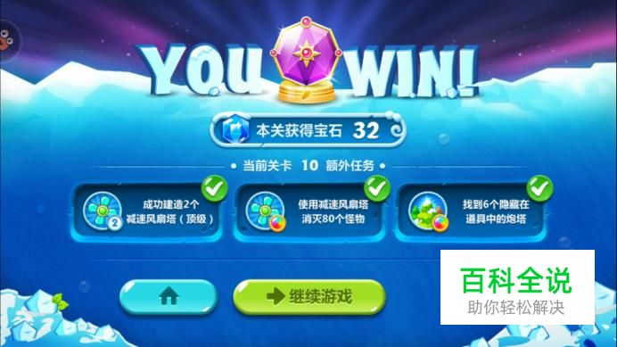 我们继续清理所有地图中的道具,并且升级我们已有的炮塔,增加火力,消灭怪物,水晶萝卜就这样获得了哦。