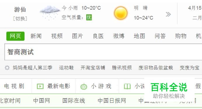 首先咱们打开浏览器,输入关键词智商测试,然后点击搜索。