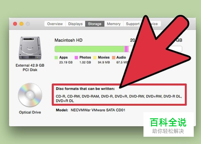查看系统资料,确定是否可以烧录DVD光盘。 在桌面中点击左上角的苹果按钮。 点击“关于这台Mac”,等待对话框出现,点击“更多信息”。 点击左侧“烧录光盘”选项,找到“烧录DVD”功能,这个功能位于右手边。 如果显示“-R”和“-RW”,就可以刻录光盘了。