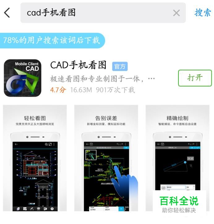 打开手机应用商店,在搜索栏里面输入 “CAD手机看图”,下面就会出现这个应用,接着就下载下来。
