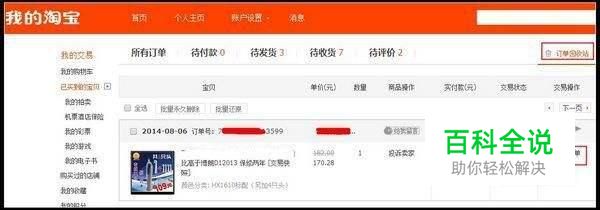 先打开淘宝APP,我的淘宝,找到 已买到的宝贝 按钮,右上角有个 订单回收站 。