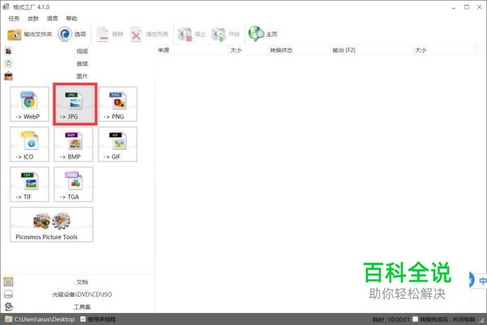首先,打开格式工厂,在左边的图片选项栏选择jpg格式,如下图所示