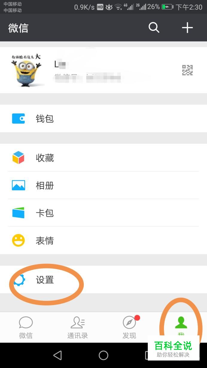 第三步,在微信登录界面中点”我“,并在此页选择”设置“,如图