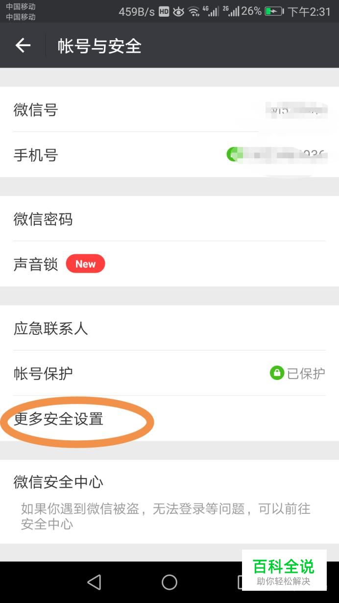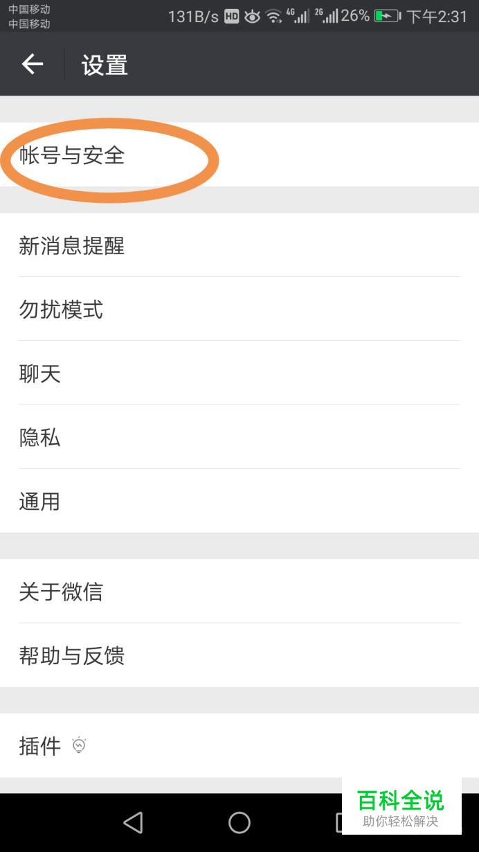 第四步,在”设置“项下‘选择”账号与安全“,如图