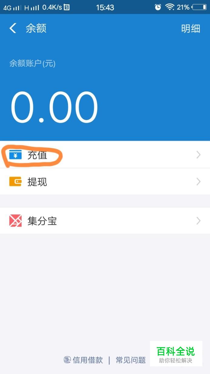 在余额界面点击“充值”。