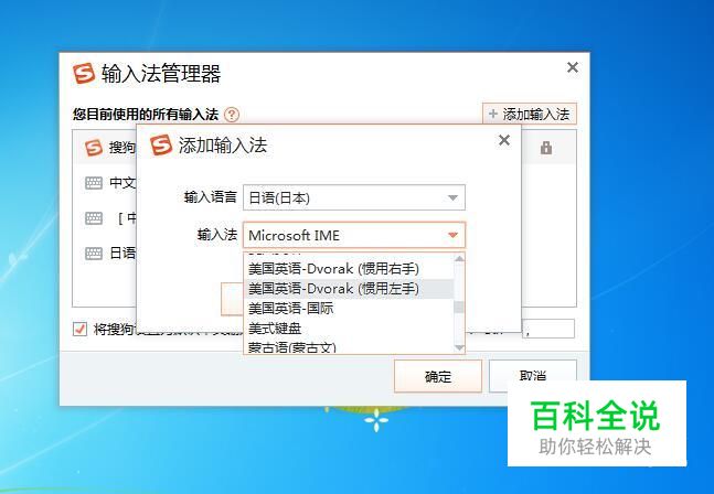接着点击确定,在输入法管理器界面选择日语,点击确定