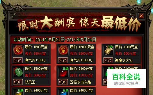 武尊今天再次迎来更新,最重要的一点是开启了限时折扣商城活动,对于大部分玩家来说这个活动还是不错的,以折扣价格能买到平时比较贵的道具,节省很多元宝,下面详细介绍一下武尊的限时折扣商城活动。 活动点游戏右上角的图标就能看到了,打开之后看到限时大酬宾,惊天最低价。活动时间是从5月21日-5月24日,一共4天时间,时间还是比较充裕的,这次打折的物品也比较多,真气丹1000的和10000的两种,镇魔令大包,还有祈灵玉以及各种5级的玄晶。 真气丹自然不用多说了,升级天命系统用的,这次是打折了三分之二,镇魔令大包八折,现在800元宝,想升级的可以买几个,另外主要是5级玄晶,通通半价,现在只有1200元宝,比较便宜,5级玄晶也是比较不错的了,有需求的玩家尽快趁着活动买一点吧。 武尊这次打折活动还是不错的,常用的一些关键性的道具都有降价。