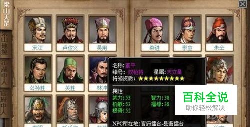 选将不用一味追求高星,很多10星的将不好,游戏打擂台的话比较适合的是有晕的将,7星有雷横,杨雄,石秀,个人感觉雷横好些,8星是刘唐和石宝,这 5个将追求的技能是力劈华山(晕)+泰山压顶(群)+致命(被动技能暴击)。9星的公孙胜和10星的花荣都会群晕,有的话擂台和比武都会提高很多。其他的将就是根据喜好和钱包来定的了。 不要以为酒馆会自己出来9星或者10星将的,这样的将只能用元宝刷,刷一次要10元宝。