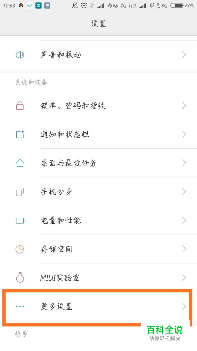 进入手机设置,在系统和设备类别中找到更多设置,点击进入