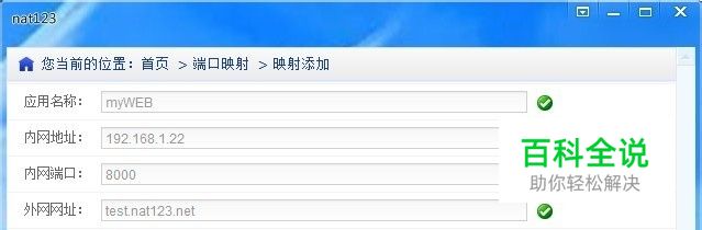 打开nat123端口映射。在添加映射时,指定80为外网端口。