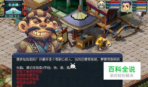 拍卖NPC 1、拍卖使者,位于长安城(205,13),只存在拍卖会开放时 2、拍卖保管员,位于长安城(214,13),一直存在,拍卖所有的物品流动都存于拍卖保管员