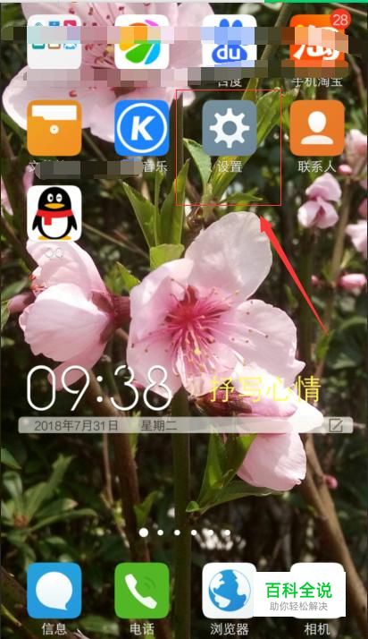 打开手机桌面,找到设置,点击进去;