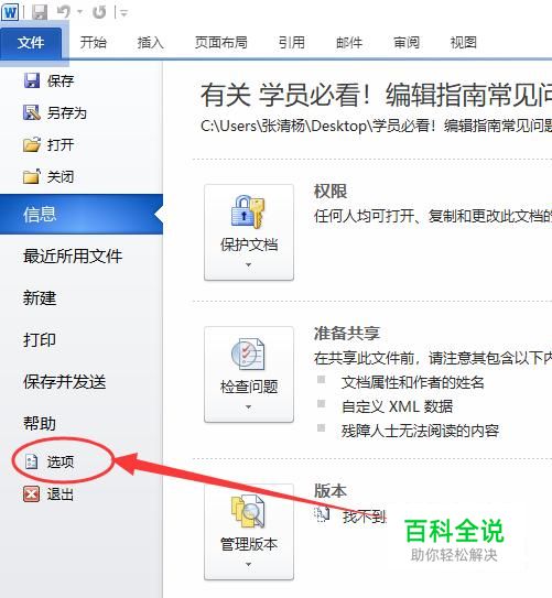 进入之后,点击左上角的文件,然后选择“选项”,如图所示。