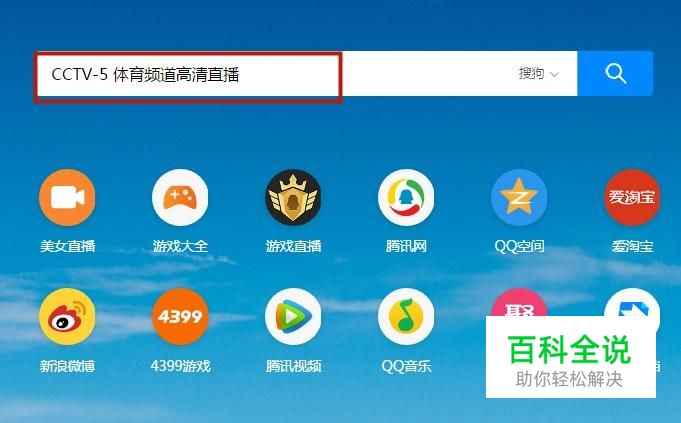 然后输入CCTVTV5体育频道高清直播并点击回车键,如下图所示。