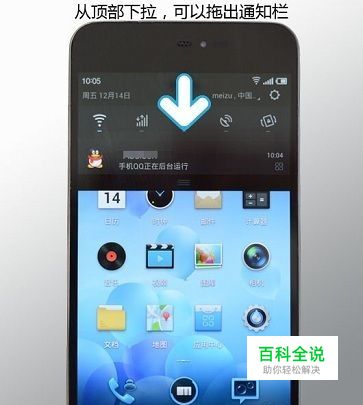 可以从顶部中间下拉,接着直接拖出通知栏。