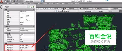 打开的文件是北京54坐标系的,从上图红色部分我们可以看到54的坐标值,我们需要在这个图上找到参考点来计算参输,我们放大CAD图,找到一个参考点,如下图: 这个点的北京54坐标对应的坐标值:X=39534229.3707;Y=3645148.1739