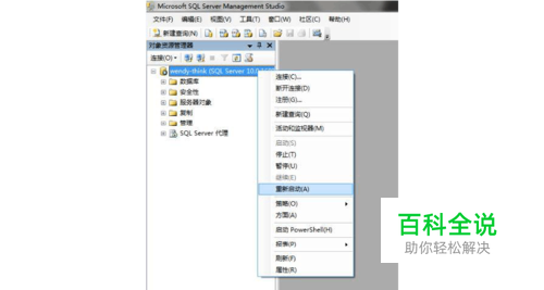 最后,在数据库实例右击“重新启动”即可。关闭sql server2008,开启后用sa登陆。