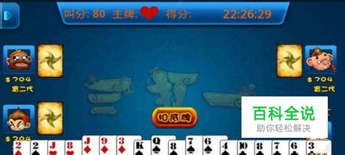 主牌 庄家在重新放置 6 张牌到底下后,需要选一种花色为主牌。其他花色牌为副牌, 2 为常主,主 2 比副 2 大。