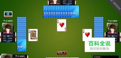 发牌 三打一一副牌,留六张底牌,其他发给四家,庄家可以得底牌更换手中的牌。 发牌,第一局游戏由第一个游戏者发,以后每局游戏都由上局庄家发。 发牌后,如果如果 4 家都不叫,则系统自动重新发牌,下把仍由上把庄家先叫。