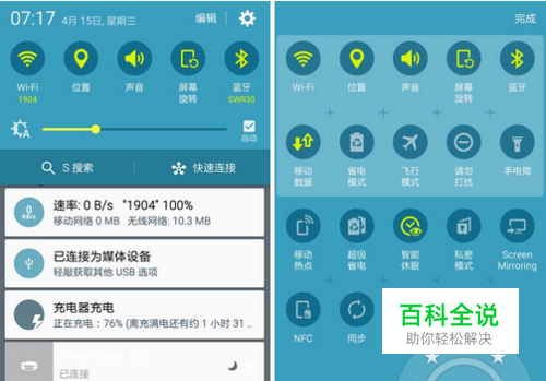 三星S6省电设置1:关闭NFC和同步 通知栏下拉菜单中,选择“编辑”,关闭下方的“NFC”和“同步”