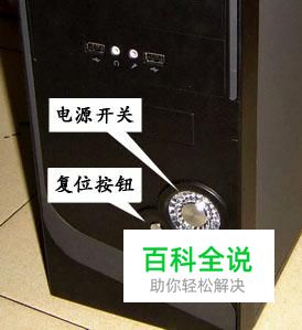 首先你可以点击电脑的复位按钮,让电脑重启,如下图所示。