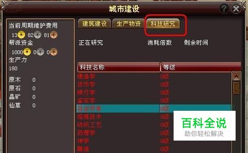 西游天下游戏帮派科技研究