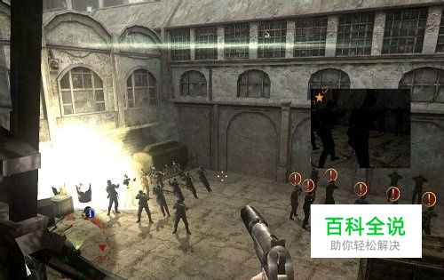 任务十二:以眼还眼 任务开始后,出现游戏提示,在某个地方的机枪阵地上有纳粹的指挥官,而这个机枪阵地并没有在地图上标示出来(地图南面)。进入房屋废墟中,在第2间房间中碰到2名烤火的纳粹士兵,从背后摸过去,以硬币转移一名纳粹士兵的视线,而后快速靠上去暗杀之。而后从楼梯上楼,楼梯的隔间也有一名纳粹,杀之。刚才那名纳粹士兵在看什么?举起望远镜来看一下!哈,得头彩了,原来是敌人的机枪阵地,只要消灭其中的纳粹指挥官即可。上到三楼,这里居高临下,视野开阔,地图北面的情况一览无余。在这里可以很轻易的射杀楼下的纳粹。等确认无生还者时,再下到楼下,去完成整个任物