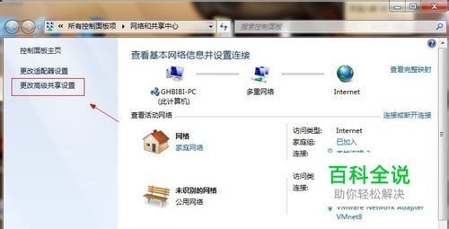 点击图中标出的位置“更改高级共享设置”出现下图。