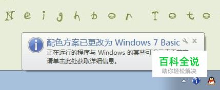有时打开软件会有Win7系统提示:“配色方案已更改为Windows 7 Basic”,如果退出软件就会还原,那么如果有时想更改配色方案使电脑桌面更好看,或软件突然出问题(如迟迟打不开)导致更改后的配色方案无法自动还原,或不小心更改后还原不了桌面的特殊效果了,就让我告诉你几个解决方案