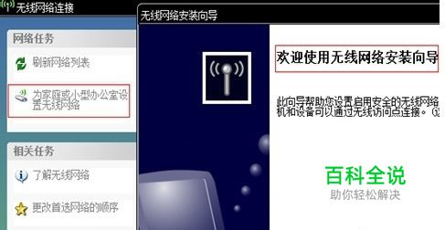 在XP下手动添加无线网络连接 首先打开“无线网络连接”窗口,选择“为家庭或小型办公室设置无线网络”按流程开始操作: