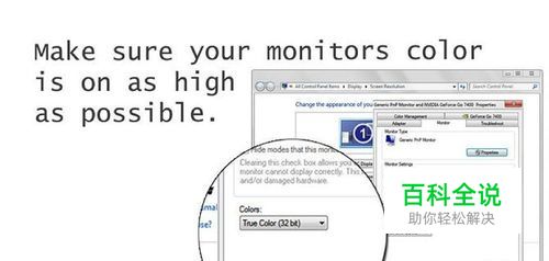 在屏幕较色前你需要做的:在控制面板上找到调整屏幕,选择highest resolution